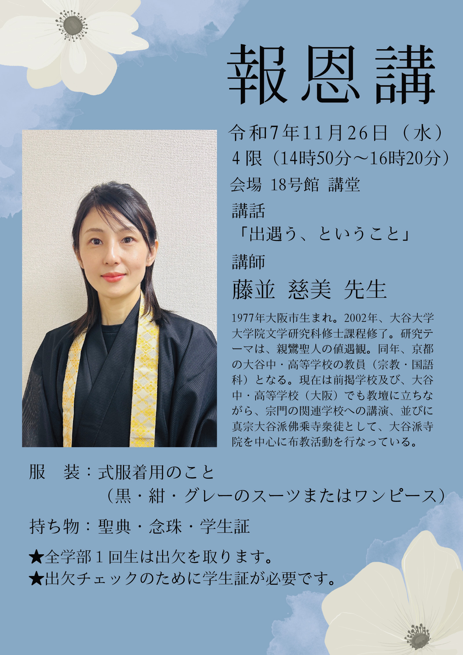 この度、令和7年度報恩講を開催する運びとなりましたのでご案内申し上げます。